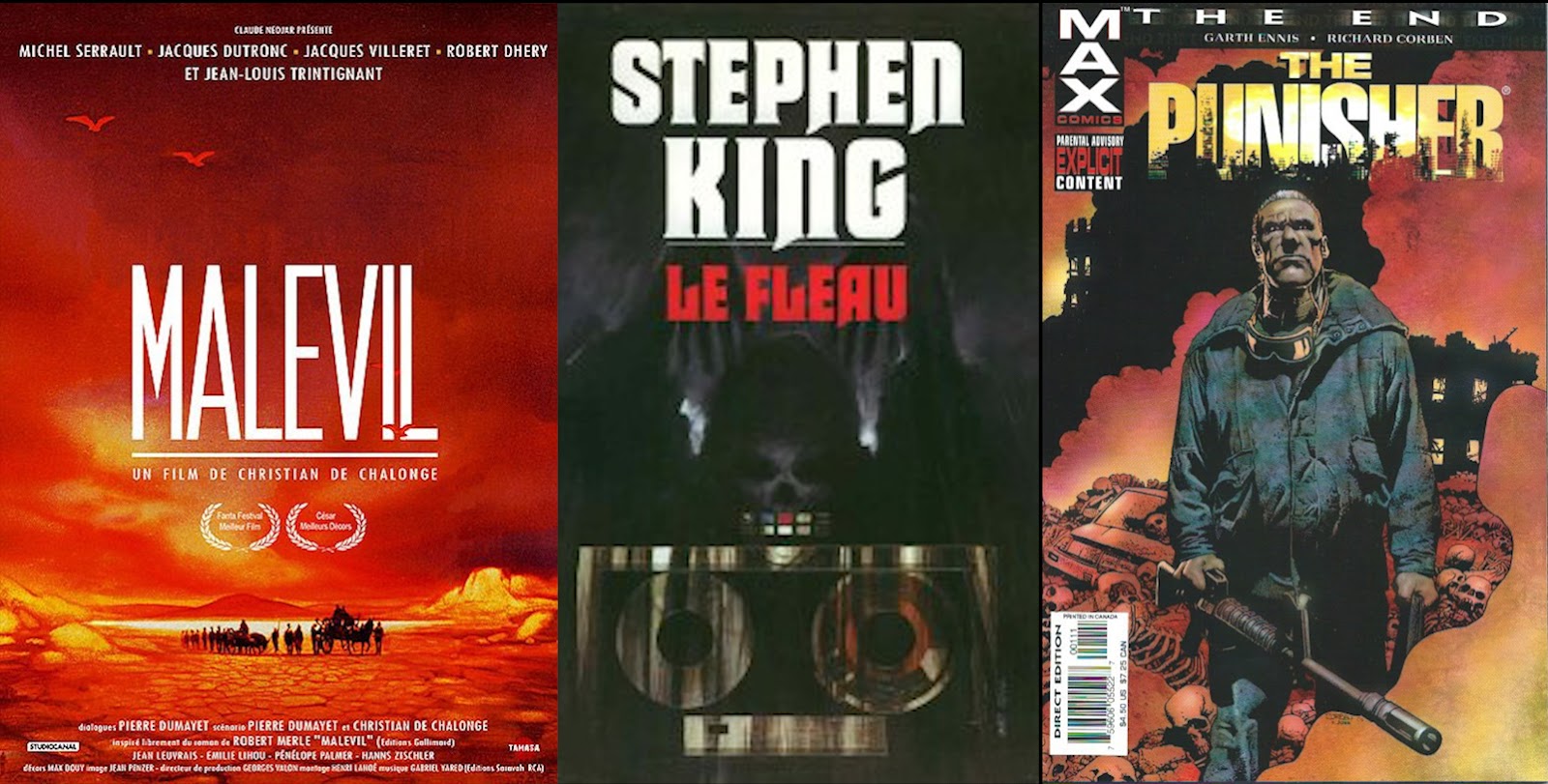 Enfin, difficile de ne pas évoquer la bande-dessinée de Corben / Ennis, PUNISHER - LA FIN (2011), très voisine dans la cruauté, le désespoir et l’absence de concession qui l’habitent, montrant les responsables de la fin du monde, terrés comme des pleutres privilégiés dans leur bunker souterrain, être débusqués par le célèbre justicier extrémiste, en route pour son ultime mission.